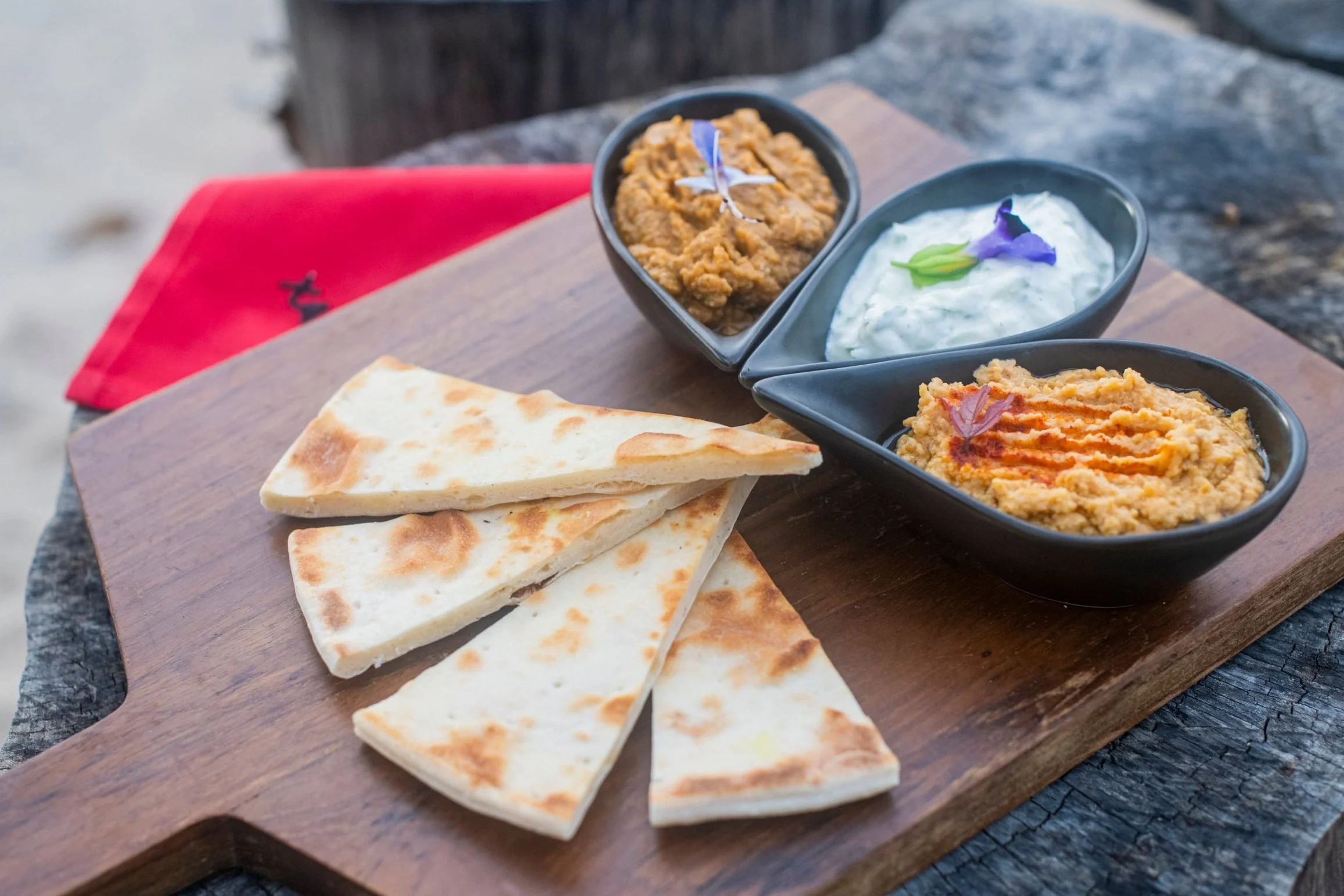 ЦАЗИКИ, ХУМУС, БАБАГАНУШ СХЛЕБОМ ПИТА НА ГРИЛЕ